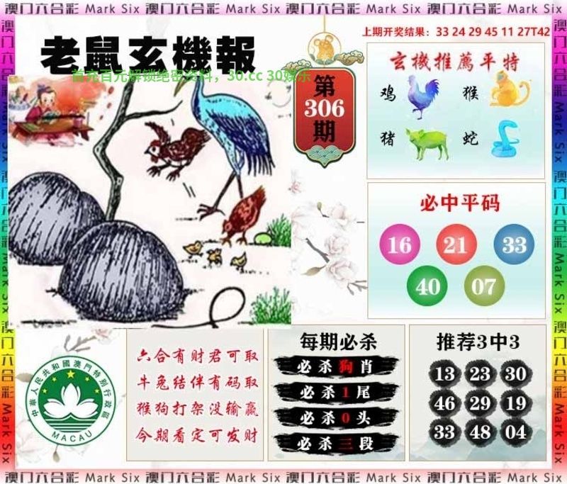 | 309期:稳准三季✨【冬春秋】开:鼠06准 |