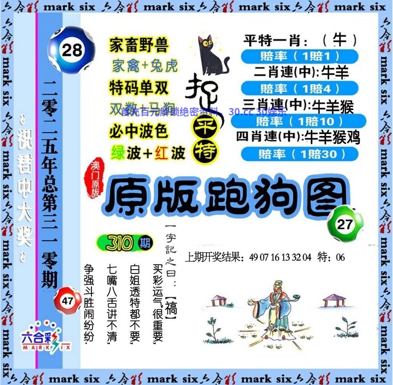 | 307期:天地两肖【地肖+牛猴】开:狗20准 |