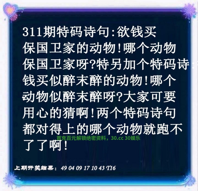 | 311期:天地两肖【地肖+猴兔】开:發00准 |